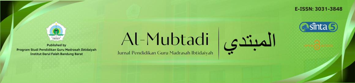 Al-Mubtadi: Jurnal Pendidikan Guru Madrasah Ibtidaiyah received 5 articles in this issue, which are the work of 14 researchers. They are senior lecturers and academic researchers from 6 of the best institutions in Indonesia; Institut Agama Islam Negeri Kudus, Institut Agama Islam Yasni Bungo, Sekolah Tinggi Agama Islam Al-Gazali Bulukumba, Sekolah Tinggi Agama Islam Sabili Bandung, Universitas Islam Negeri Sunan Kalijaga Yogyakarta, and Universitas Terbuka